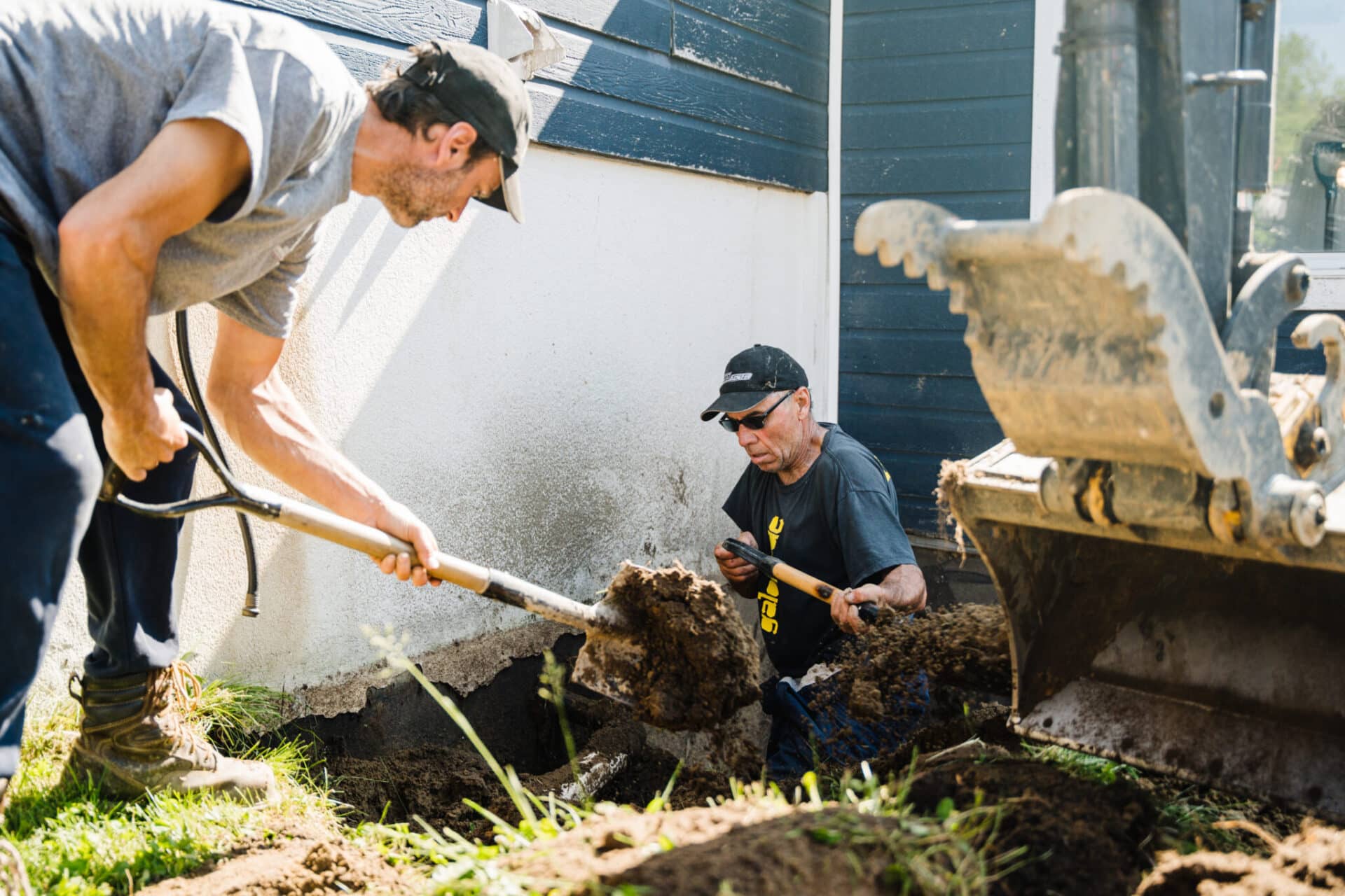 - Creuser le sol avec la pelle (mini-excavation) de 6 à 8 pouces sous l’empattement (footing) de la fondation de la maison.